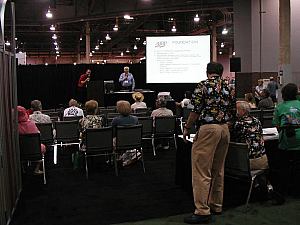 閉会式の出口には来年の会場を知らせる巨大ポスター。 2005年9月29日-10月1日/ニューオリーンズ |