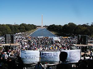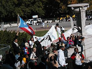 夜行便でワシントン・ダレス空港に着いたのは日曜日の早朝、タクシーを見つけるのが大変でしたが、ともかくも、前夜に成田から到着し ていた「自立センター・高齢協合同調査団」と合流しました。ちなみにラスベガスで飛行機が飛び立った夜12時とは東部時間で午前3時のこと、到着が午前6 時半(まだ暗い)でしたので飛行時間は3時間半。ほとんど寝ることなく到着した次第です。その間に軽い夜食も出ました。 到着した日(17日)は日曜日でしたので訪問先も休み、高齢協メンバーはワシントン中心部・アーリントン墓地を探索です。リンカーン 記念堂に向かって歩いていたら何か集会を開いている様子。向かう途中で、帰る参加者が持っていたプラカードには「兵隊たちを我が家に戻せ」(おそらくイラ クから)。思わず「あんたに賛成!」と言いながら記念堂前へ。三千人位の集会が開かれていました。集会は「MILLION WORKER MARCH」。 翌日からはワシントンでAAPD(障碍を持っている人たちの全米協会)訪問、AARP(旧称全米退職者協会)訪問、ADAPT(直接 行動する障碍者の会)面会調査を行いました。AARPは今回の「合同調査団」の主要調査対象の一つ。2日間しっかりと説明を受け、21日にはワシントン周 辺のアルツハイマー・デイケア施設、IONAシニアセンターを訪問しました。 その後、ニューヨーク州の西部、ナイアガラの滝の近くのバッファロー市に移動です。2時間前にはダレス空港に到着していたのですが、 厳重な対テロチェックのために中西さんたちが乗り遅れてしまいました。 ちなみに、アメリカの飛行機搭乗時のチェックは、911以前とは異なり、かなり厳しい。アメリカ入国時の中継地ロサンジェルス空港で も、ラスベガスの空港でもダレス空港、バッファロー空港でも同様です(出国の中継地シカゴ空港では何もありませんでしたが)。預け入れバゲージは抜き打ち 検査のために、もし鍵をかけたら壊すと文書で宣言しています。上着類は(ぶかぶかに着るものも同様)着たままは許されません。パソコンを別にするのは常 識。靴も脱がされる場合があります、というより脱がされる方が多い。他に、ベルトのバックルであろうとなんだろと金属である限りはほとんど外すよう、男女 を問わず要求される。あと注意すべきは、写真のフィルムのようです。私はデジカメだったので全く問題なかったんですが、透視のためのX線は結構強く、感光 してしまうかも知れません。X線防止用の鉛の袋に入れようもんならそれを開けられるだけではなく、フィルムの円筒さえも開けられる覚悟が必要です。 本題にもどれば、翌日から、もう一つの主要調査対象の一つである、西部ニューヨーク州自立生活プロジェクト(WNY Independent Living Project)という組織を訪問しました。ここには、ピア・カウンセリング施設(障碍者どうしの体験共有相談)、アメリカ先住民(インデアンと言われた 人たち)のための自立生活センター等が入っています。 |