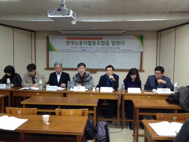 「発題者」(報告者)と「討論者」、全6人と通訳1人。