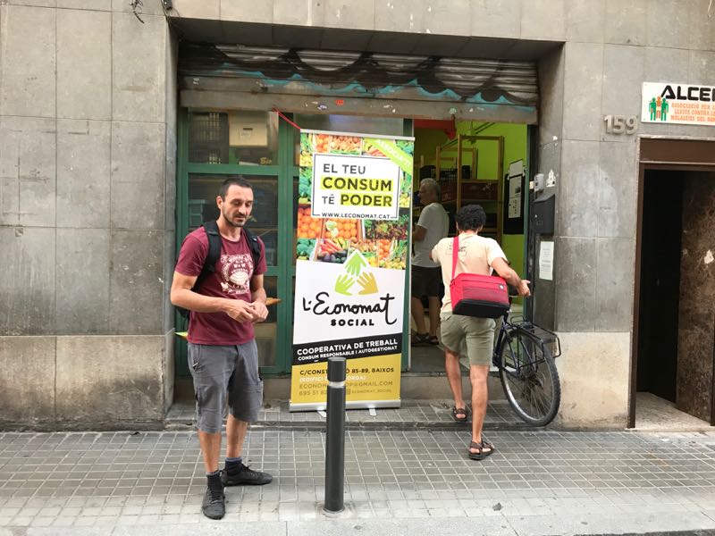 店の前。L’Economat Socialの下に「労働の協同組合」と書いてある。