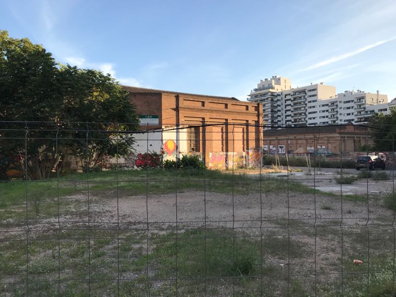 工場跡地。この奥が協同組合運動の拠点がある