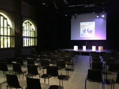 視聴覚ルーム。サンツの協同組合の歴史を教えている。