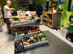 店の前。L’Economat Socialの下に「労働の協同組合」と書いてある。