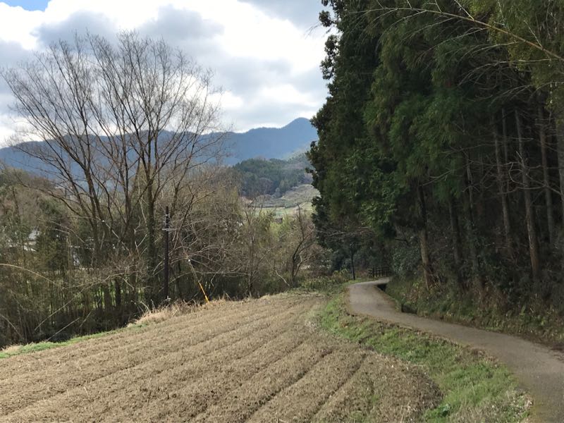 石舞台古墳に向かう山道。左は飛鳥川。秩父でも歩いているような感覚です。